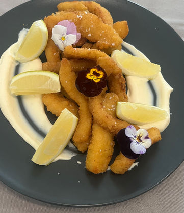 Tiras de lula com aioli de limão